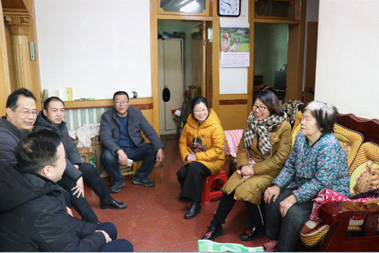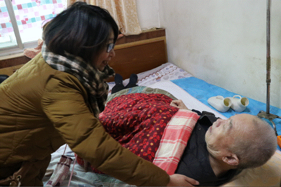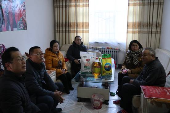呼敬民自13年前患上脑溢后,一直卧病在床,言语迟缓,生活不能自理,他的老伴身体也很差。杨艳利书记搀扶起呼敬民,并向他的老伴了解他的病情、治疗情况和生活起居习惯,并代表医院党总支感谢他老伴十几年来对他无微不致的照顾,叮嘱他老伴在照顾好呼敬民的同时一定要调养好自己的身体。