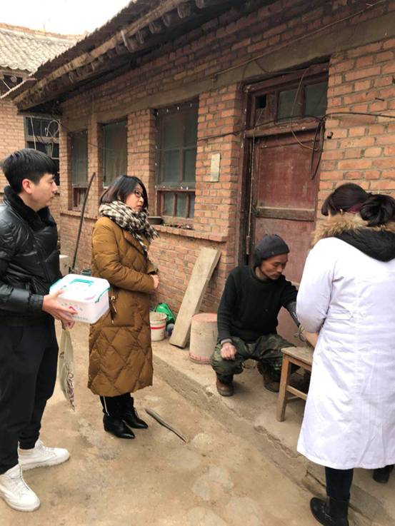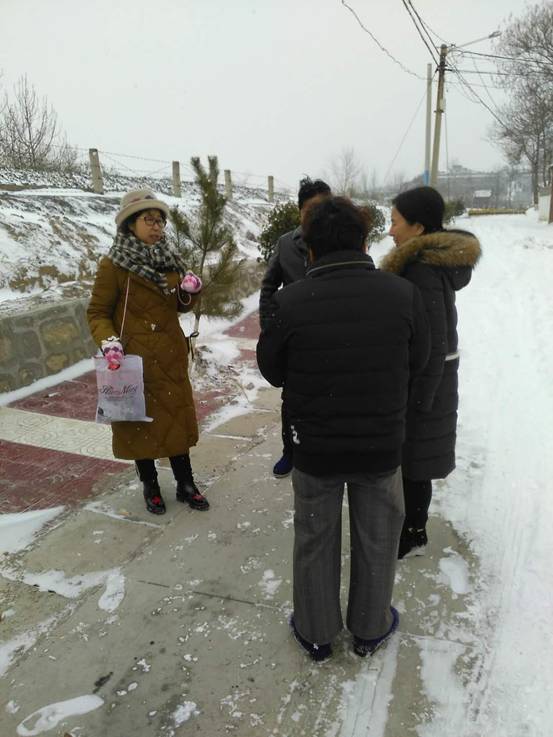 1月24日至25日,杨书记一行七人利用中午吃饭时间冒着大雪深入岳庙办辖区苗家村、周家村等四个村10户贫困户家中进行健康扶贫。由于好几个村在土塬地带,风雪大、路又滑,道路崎岖难行,扶贫小组在杨艳利书记的带领下不畏严寒走东户、进西户,分别对张丑丑、严淑会等10户贫困户测血压、询病情、做登记、开处方,同时开展宣讲十九大精神。周家村的张二峰远在新疆,已经十八年未回家了,他的老母亲患重病多年,杨书记一行人不惧寒冷去给她做身体检查,并送去家庭常用药品。