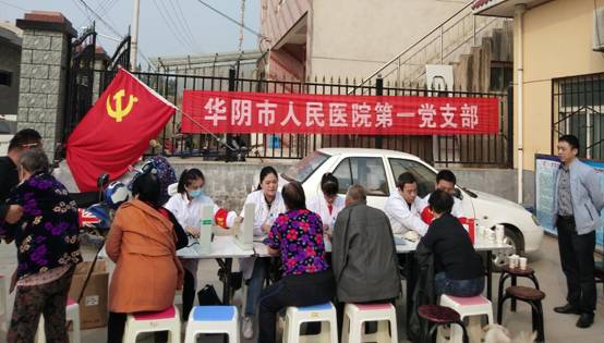 党旗招展,真情涌现。城河村驻村第一书记时刻心系群众健康,积极联系市人民医院开展免费义诊工作,在市医院郭小强院长助理的支持和组织下,抽调市医院第一党支部的骨科、眼科、检验科,急诊科、内科等优秀党员医生为城河村村民测量血糖、血压,检查身体,开具处方,宣传健康保健护理知识,竭力为群众的健康保驾护航。
