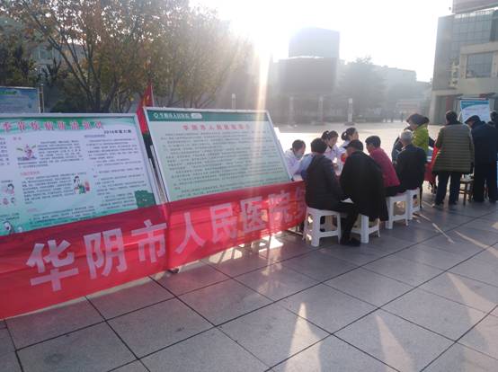正值入冬后天气逐渐寒冷之际,华阴市人民医院第一党支部6名党员医护人员组成志愿者义诊小组,在支部书记郭小强的安排下到政府广场进行义诊,为百姓送去健康。