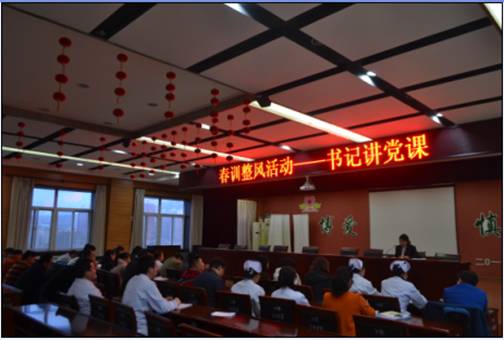 按照全市春训整风活动安排,市卫计局党委下发了《关于在春训整风活动中开展党组织书记讲党课的通知》阴卫党(2017)8号文件精神,我院党支部积极响应,于2月23日下午5时利用下班时间,由支部书记杨艳利同志结合工作实际,确定党课的主要内容,主题突出,有较强的针对性和指导性,给支部党员干部同志上了一堂活跃而生动的党课。