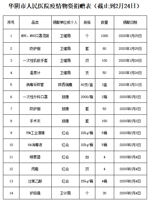 我们永远铭记这份患难与共的人间真情,衷心向所有关心、帮助、支持华阴市人民医院疫情防控的各界爱心企业、爱心人士和朋友们,表示最诚挚的感谢!致以最崇高的敬意!