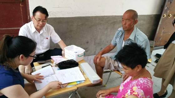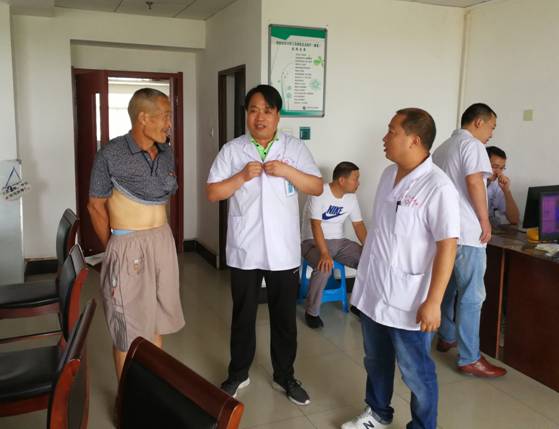 酷暑盛夏,骄阳似火,室外温度达到36°。进村后,干部职工们就提着医院统一分发的牛奶等慰问品,送到到各自包联的贫困户家里。孟保华院长带领医生,深入包联贫困户家里,与贫困户亲切交谈,了解他们在劳作、家庭、身体方面的情况,并亲自为贫困户测心率,量血压,换药等;杨艳利书记了解到包联贫困户杨苏民患大病后,积极联系我院外科主任及合疗科相关人员,为其办理住院手续,享受贫困户惠民政策:不用交费就可以先住院治疗;张华平副院长带领医院职工积极入户,与贫困户话家常,实地了解贫困户情况,对贫困户相关资料进行进一步完善;张新宇副院长的包联贫困户张战露因背部感染来到医院看病,他亲自联系门诊外科医生,陪同看病,为贫困户制定治疗方案,并在就诊后,把患者送回家;驻村工作队队长王启刚副院长带领驻村干部,打扫、收拾驻村办公室,订挂扶贫工作制度牌,核查、整理扶贫相关资料。