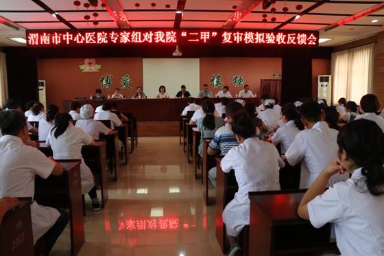 为了进一步确保我院二甲复审顺利通过,在复审的最后冲刺阶段,市医院再次邀请渭南市中心医院复审专家组到我院进行正式复审前的模拟验收。 7月22日上午,渭南市中心医院副院长焦建雄一行6位专家来到我院进行复审工作检查。专家组针对上次检查提出的整改措施的落实情况进行了重点核查,并对急诊科、内一科、内三科、妇产科、ICU、新生儿科等重点科室进行了现场检查。通过和科室人员的访谈,对资料的查阅以及现场的查看,专家组对检查中存在的问题进行了记录。