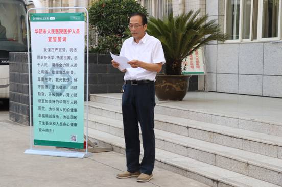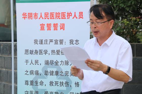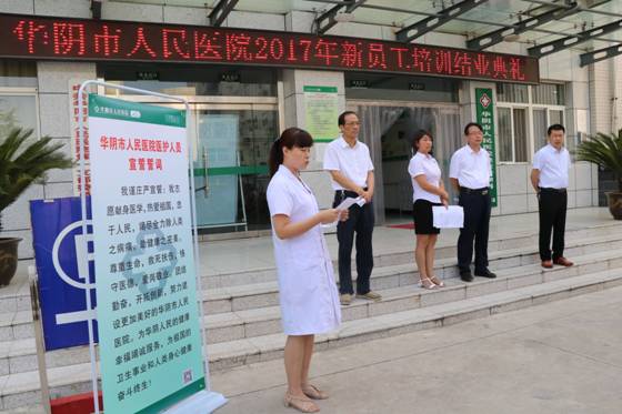 今年的新员工培训班结业典礼新增了一项重要内容:新员工宣誓。由院办主任郭小强带领宣誓,我谨庄严宣誓:“我志愿现身医学,热爱祖国,忠于人民,竭尽全力除人类之病痛,助健康之完美。尊重生命,救死扶伤,恪守医德,爱岗敬业。团结勤奋,开拓创新,努力建设更加美好的华阴市人民医院。为华阴人民的健康幸福竭诚服务,为祖国的卫生事业和人类身心健康奋斗终生!”