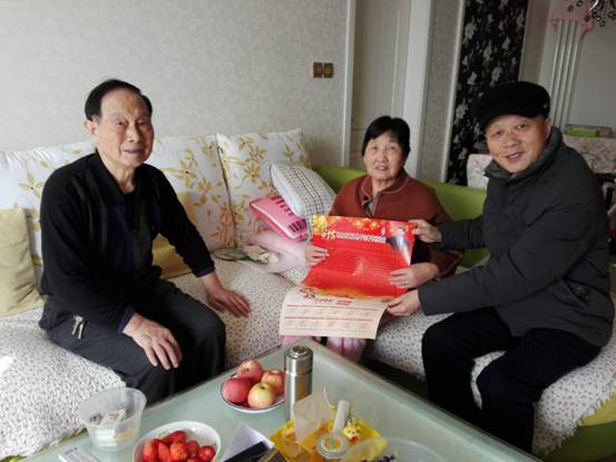 为了充分体现医院对退休干部职工的关爱,保证市医院退休干部职工过上一个欢乐祥和的春节,在新春佳节来临之际,2月7日,市医院院长孟保华、党总支书记杨艳利、副院长张华平、王启刚、张新宇、工会主席张新涛等一行人带着慰问品走访、慰问市医院退休干部职工,为他们送去诚挚的新年祝福。