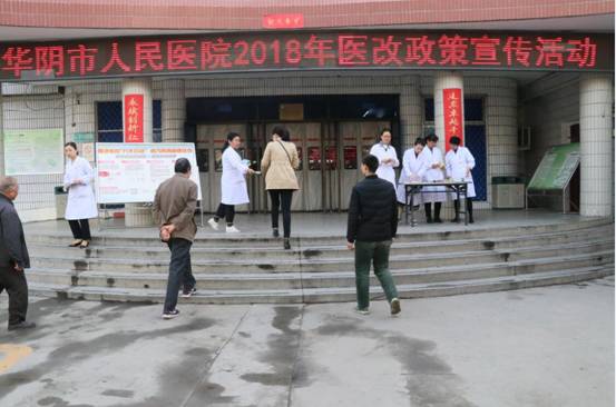 为认真贯彻“两会”精神,进一步深化医药卫生体制改革,全面建立具有中国特色的医疗服务体系,让群众及时知晓最新的医改政策,3月28日早上,华阴市人民医院办公室组织医务科、三统办、药学科、合疗科、医保科等科室在医院大门口开展“2018年医改政策宣传活动”。