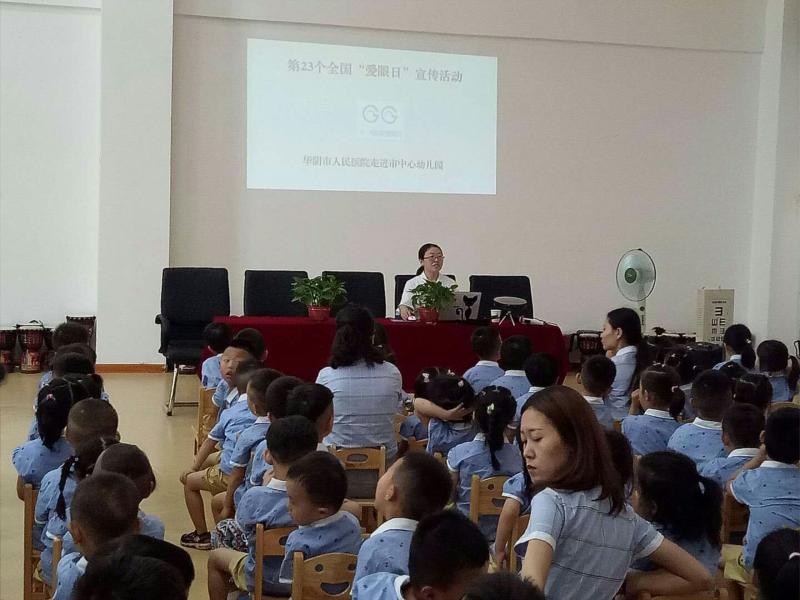随着手机、电脑和电视的广泛普及,近年来儿童近视低龄化的趋势日益明显,为增强幼儿的爱眼、护眼意识,促进幼儿的健康成长,在6月6日第23个“全国爱眼日”来临之际,在院领导的安排下,华阴市人民医院疾控科、五官科医务人员走进市中心幼儿园,针对全校200余名师生,开展了以“科学矫正近视,关注孩子眼健康”为主题的宣传活动。