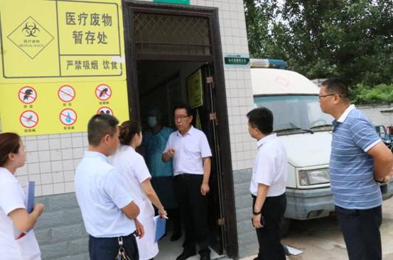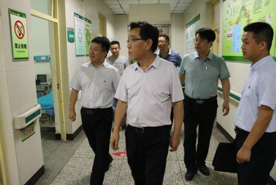 7月12日上午,渭南市卫计局副局长李晓平一行深入华阴市人民医院,对血库、医废暂存处、新门诊楼建设工地、急救中心、健康管理科等指导检查工作,市医院院长孙晓军等陪同检查。