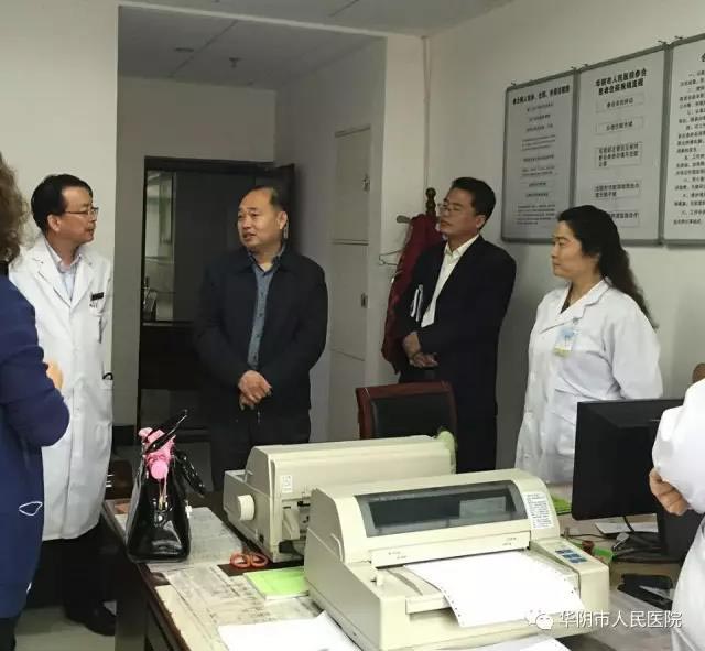 4月25日早,华阴市副市长赵晓龙、市卫计局局长谢永峰、市合疗经办中心主任赵薇冒雨来我院进行农村合作医疗扶贫工作调研。