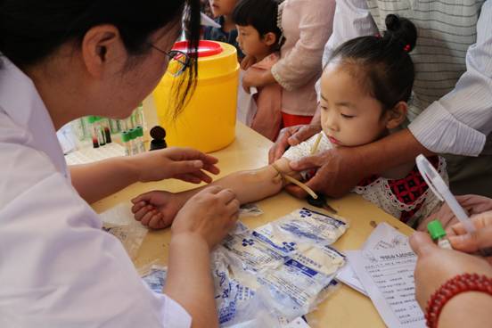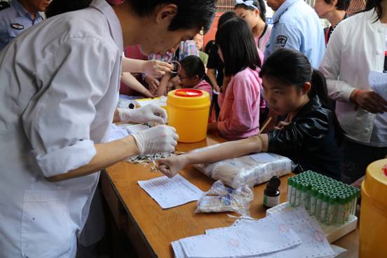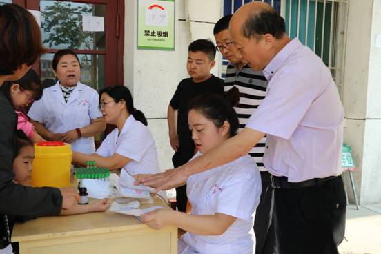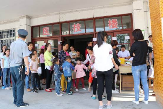 检查化验工作从5月13日开始。在医护人员的引导下,需要进行检查的儿童、群众在门诊楼、医技楼、检验科窗口排起了长队,依次进行抽血化验。院领导十分重视本次检查工作,分别来到门诊楼和医技楼现场安排协调检查工作。保卫科全体人员在科长惠毅斌的带领下,提前到达医院,早早的进入了工作状态,对医院的来往车辆进行指挥安排,维护前来接种群众安全,为检查工作提供了更加安全的诊疗环境。检验科全体工作人员在主任张俊组织下,分设门诊楼、医技楼、检验科窗口三个采血点,细心的为群众抽血化验,提醒患者注意事项,轻声细语的安慰哭泣的小朋友。儿科主任卫荣江等医护人员耐心的填写化验单,财务科、护理部、内审科、总务科等后勤人员也来到接种现场支援,积极引导群众排队交费、维护现场秩序,检查工作在紧张而有序的氛围中开展。